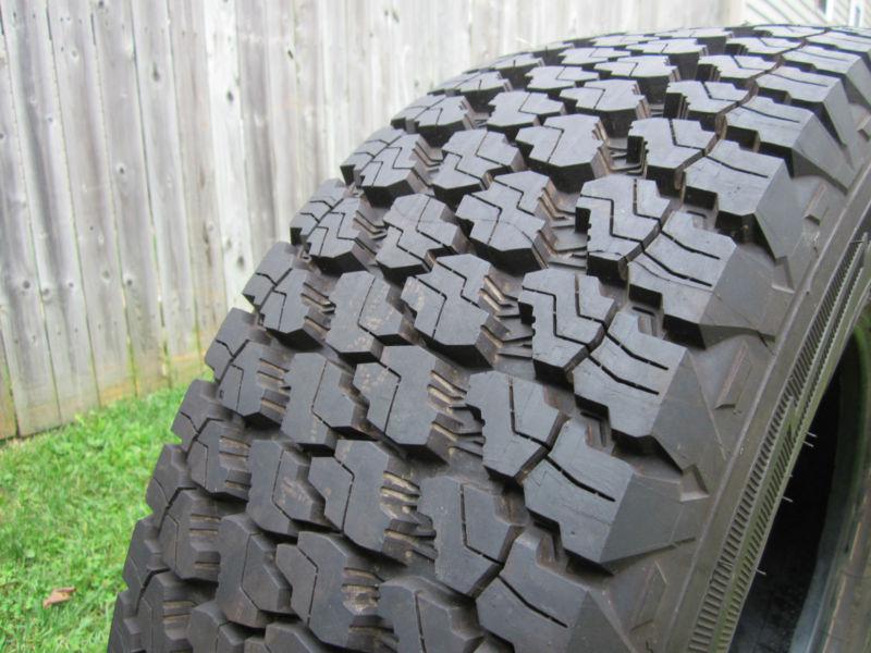 For sale is a new Goodyear Wrangler SilentArmor tire. This tire was mounted as a spare on my 2012 Dodge Ram Outdoorsman. This tire is NEW and has never been mounted on the truck. It has ZERO miles on it. I swapped my rims and tires for an aftermarket set, and took this off the spare rim to install a larger spare tire to match my new set.