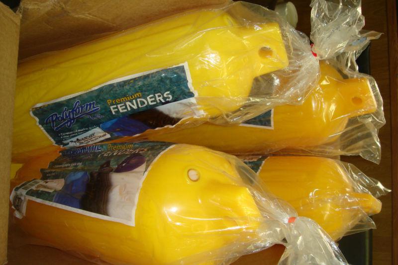 premium quality commercial marine grade vinyl fenders. poly form g-4 yellow color. purchased this for my boat but I trade my boat with bigger one and these are little to small. auction is for two. Have 4 available, never been used, still in plastic packaging. shipping to 48 states. Please E-mail me with any Q.