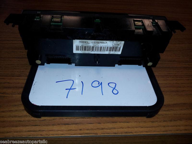 THIS AUCTION IS FOR A CLIMATE CONTROL UNIT AS TITLED AND PICTURED. All of are CLIMATE CONTROLS are 100% gauranteed. Most of our CLIMATE CONTROLS are used so they may have some light scratches any major damage is always noted. You will get the ITEM in the picture so please make sure its the correct switch before you buy. If you find a problem with anything we sell, all you have to do is contact us and we will take care of it immediately. SAVE MONEY AND BUY HERE!!!!!!! Please ask all questions prior to bidding. The years we have provided are based on our research and may fit other years. 7198 NOTE: SOME BUTTONS ARE PEELING. |