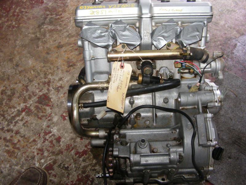 03 YAMAHA YZF600R ENGINE 2851 MILES GOOD CONDITION IT IS USED I ONLY SELL TO UNITED STATES ONLY. ****NOTE**** IF YOU ARE BUYING A ENGINE YOU MUST READ THE SHIPPING TERMS I MAY SELL TO OTHER COUNTRIES IF ASKED BEFORE BIDDING AND IF SO SHIPPING PRICES WILL BE MORE. IF YOU ARE FROM ONTHER COUNTRY AND YOU BUY THE ITEM WITH ASKING OR GETTING A SHIPPING QUOTE I WILL KEEP YOUR MONEY ALL ITEMS ARE AS DESCRIBED. I AS OTHERS MAY MAKE MISTAKES. EVERYTHING IS PRICED AND DESCRIBED TO THE BEST OF MY KNOWLEDGE. *** SHIPPING COST *** ITEM MAY OR MAYNOT SHIP USPS POSTAL DEPENDING IF ITEM WILL FIT IN PRIORITY SMALL OR MEDIUM BOX ONLY SHIPPING COST FOR USA BUYER IS QUOTED IN THE DESCRIPTION. PUERTO RICO, HAWAII, AND ALASKA WILL BE MORE FOR SHIPPING COST PLEASE ASK FOR SHIPPING COST BEFORE BIDDING. *** INSURANCE *** INSURANCE IS YOUR CALL BEFORE BIDDING PLEASE ASK FOR A INSURANCE PRICE. *** SHIPPING *** WE SHIP WITH UPS. I WILL NOT GIVE TRACKING # UNTIL 8 BUSINESS DAYS AFTER I SHIP THE ITEM. MOST ITEMS SHIP 2 TO 3 DAYS AFTER AUCTIONS HAVE BEEN PAID FOR. I HAVE UP TO 5 DAYS TO SHIP YOUR ITEM AFTER ITS BEEN PAID FOR. ANY QUESTIONS PLEASE LOOK AT MY FEED BACK IT WILL ANSWER MOST QUESTIONS ASKED. UPS WILL NOT SHIP TO A P. O. BOX ******* NOTE ******* IF BUYING A MOTOR I WILL NEED (1) A COMPANY NAME AND ADDRESS TO SHIP TO. (2) THE COMPANY PHONE #. (3) COMPANY MUST HAVE A LOADING DOCK OR TOWMOTOR. WE USE A COMMON CARRIER OR SEMI TRUCK AND TRAILER THEY DON'T DELIVER TO A HOME ADDRESS **** HOW TO PAY FOR ITEM **** YOU MUST HAVE A CONFIRMED ADDRESS WITH PAYPAL BEFORE I SHIP YOUR ITEM ITEMS MUST BE PAYED FOR BY PAYPAL WITHIN 3 DAYS AFTER AUCTION HAS ENDED.