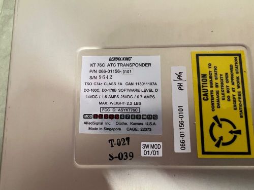 Bendix/king kt-76a atc transponder 13.75v pn 066-1062-10(US $175.00)