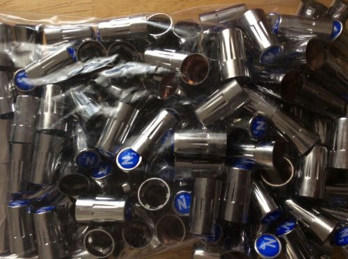 THIS IS FOR a lot of 100 CAPS CHROME VALVE STEM CAPS. with BLUE N-2 NITROGEN LOGOS on them. >>>>>>>>>> universal fit.<<<<<<<<<<<<< Brand New Tire air Valve Stem Caps ( CHROME PLATED PLASTIC (ABS) with rubber gaskets inside )