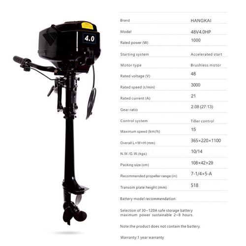 1000w 48v Electric Outboard Brushless Motor Fishing Boat Engine Trolling Motor on 2040-parts.com