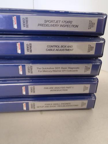 ![]() #90-823732-25: Mercruiser Alpha Drives 9:20 #90-823732-27: Force Trim and Tilt Systems 11:19 #90-823732-30: Parts and Accessories Counter Sales 24:48 #90-823732-31: Mercruiser Delivery Preparation 14:12 #90-823732-33: Force Pre Delivery Inspection 10:28 #90-823732-38: The Quicksilver DDT: Basic Diagnostic For Mercury/Mariner EFI Outboards 15:00 #90-823732-42: Force Small Engines: Setup and Basic Trouble Shooting 20:00 #90-823732-43: Control Box and Cable Adjustment 20:00 #90-823732-44: Failure Analysis Part 1: Introduction 20:00 #90-823732-45: Failure Analysis Part 2: Outboard Powerhead 20:00 #90-823732-48: Sport Jet 175 x R2 Predelivery Inspection 15:00 All videos in excellent shape with original cases. |