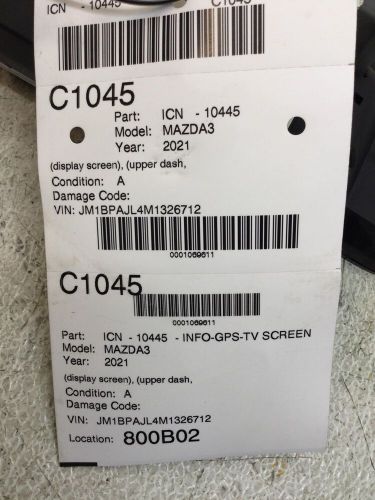 19-22 Mazda 3 Radio 808" Navigation Display Screen Oem Bdgf-611j0-a on 2040-parts.com