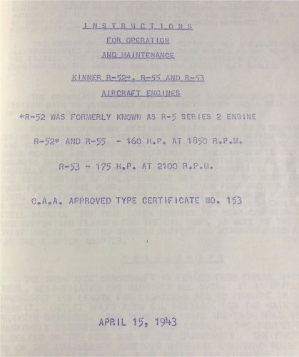 1942 Kinner Aircraft Engines & Parts Catalog & Specs & Many Airplanes 146 Pg on 2040-parts.com