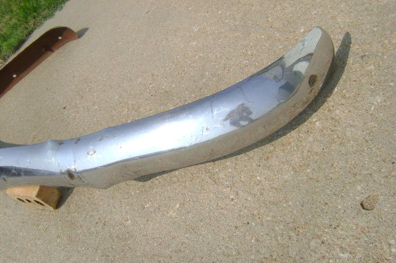 Original frt bumper off of a 46-48 Plymouth. This bumper is bent up and it has dings, dents, and scratches. It is nice and solid with no rust out and no heavy, flaking surface rust. Solid, original core bumper selling as is. See my other auctions for the rear and combine shipping.