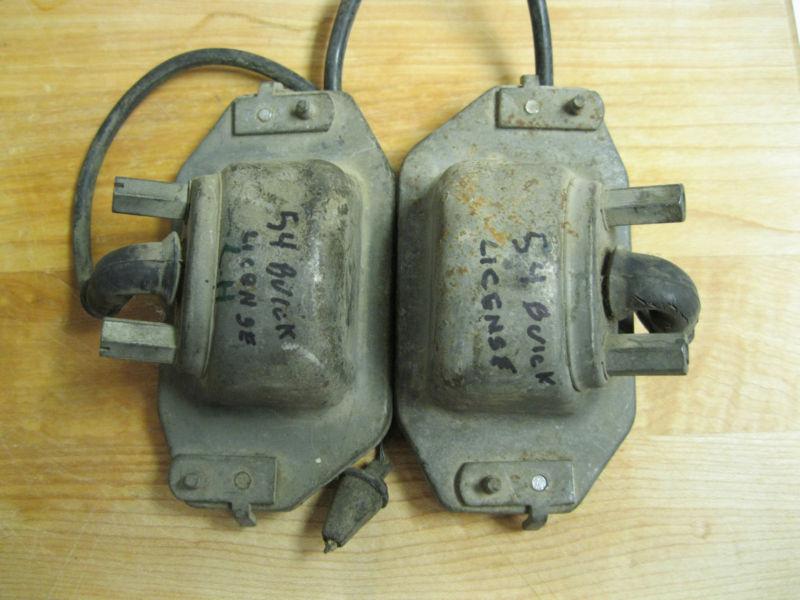 Right and left license plate assemblies for a 1954 Buick. The wiring was cut about 6" from the back.