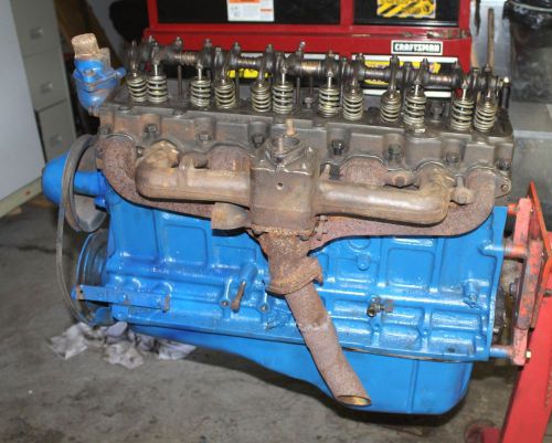 THIS IS A 1958 235 CHEVY MOTOR, THE HEAD HAS A NEW VALVE JOB THERE IS NEW RINGS ROD AND MAIN BEARINGS INSTALLED ALSO WHAT YOU SEE IN THE PICTURE IS WHAT YOU WILL GET PLUS THE FUEL PUMP THE HEAD IS JUST SITTING ON THE BLOCK NOT BOLTED DOWN. THE OVERHAUL WAS STARTED BUT NOT FINISHED. ITS LOCATED ABOUT 25 MILES WEST OF PITTSBURGH PA. I CANT SHIP MUST PICK UP. I GOT THIS MOTOR WITH A LOT OF PARTS I BOUGHT. IT WAS NOT BORED . THERE WAS A COUPLE VALVE GUIDES PUT IN THE HEAD WHEN THE VALVE JOB WAS DONE.