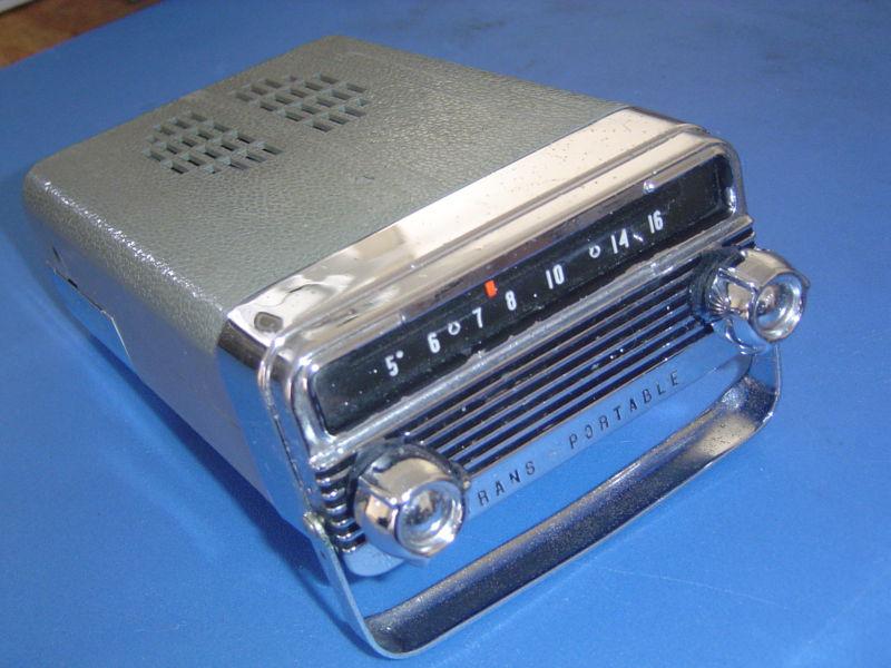 FOR SALE: 1958 ACCESSORY OLDSMOBILE TRANSPORTABLE RADIO. THIS RADIO ASSEMBLY HAS GOT TO BE ONE OF THE RAREST AND MOST DIFFICULT ACCESSORIES TO FIND. THE RADIO DOES PLAY AND THE ADAPTER WHICH SITS IN THE DASH IS IN GOOD CONDITION. BOTH PIECES ARE USED AND SHOW SOME WEAR FROM AGE BUT DEFINITE THEY ARE NOT MARGINAL QUALITY PIECES. WHEN WAS THE LAST TIME YOU SAW ONE OF THESE FOR SALE? DON'T HESITATE AND THEN ITS TO LATE . ++++BUY NOW++++