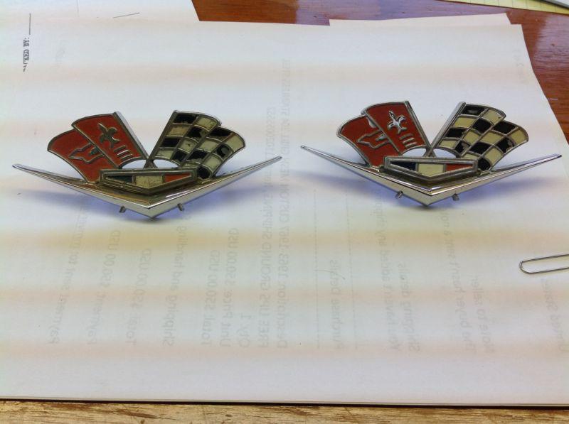 Up for auction is this pair of two (2) original crossed flag emblems, from the 63 Vette shown in the last picture.