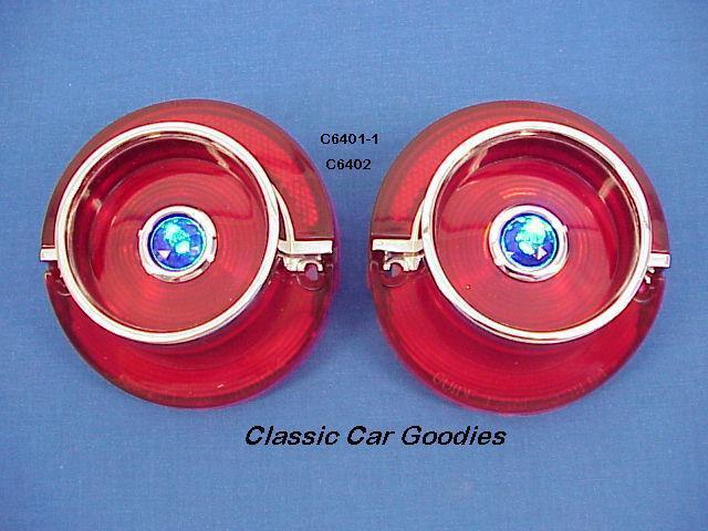 Blue Dot Tail Light Lens (2) Here is a brand new pair of lenses for your trusty Chevrolet. These have the chrome die cast metal bezels. Is one of yours cracked? Faded? These feature real diamond cut glass blue dots with chrome bezels. We also sell the led tail lights. Lots of neat stuff in the Classic Car Goodies Store (currently over 1,000 items!). Call customer service at 303.317.4281 if you have a question.