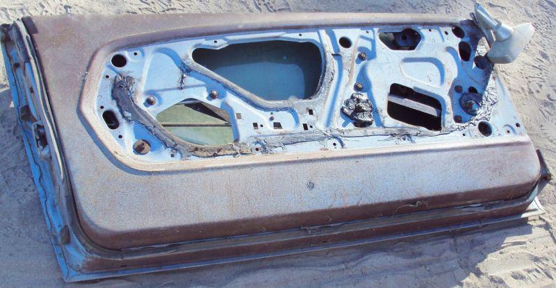This is a very nice original door; this has original paint; this door has no dents or rust through; it is hard to find a nicer one; the mirror is not included; this will be shipped out Greyhound due to size and being more cost effective, please include your phone number for Greyhound to contact you when your item/s arrive; shipping and handling will be 65.00. Please realize that most of the parts we sell on E-bay are over 30 years old, and they will be in need of full restoration and are not leaving us here in perfect condition, but they are a good restorable parts. All items are described to the best of my knowledge. I reserve the right to disqualify any bidders with significant negative feedback and offer the item to the next highest bidder. You will be notified with tracking information from USPS, UPS or directly through E-Bay emails! (Sometimes it has been known to end up in your Junk box!!) So please check that also as we have no control of the processing between E-bay and USPS or UPS! Shipped through Freight Carrier or Greyhound we will notify you direct through E-Mail. We no longer ship to Hawaii, Alaska, or Puerto Rico, and is not permitted so please don't ask! Due to our dry climate and only approximately 10.5” of rain a year in our area of California we get very little cancer. Please read the entire description & view all photos prior to bidding. We want you to be as INFORMED as possible about each auction so that you can make a sound bidding decision and not be disappointed with your purchase. Please CONTACT us with any questions you might have about an item. We would much rather have you not placed a bid on an item than to be disappointed with it. All payments MUST be received 10 days after auction end; nonpayment will result in a credit request from eBay and may result in a negative feedback! After receiving your item/s if you are not satisfied with your purchase, please contact us immediately, so that we may remedy the situation accordingly. Then we request that you leave us 5 Star on our feedback as they are vital and valuable to the continued success of our business through E-bay system. Winning bidders should contact us within 3 business days of the close of auction with Shipping your large item out through Greyhound we will need a phone number to contact you for your pickup. (If we do not receive your phone number for this purpose we will contact eBay through their system for your phone number and you will receive a message from eBay saying that requesting information.) Please do not be "ALARMED" if this happens. “WE WILL ONLY SHIP SMALL ITEMS INTERNATIONALLY THRU USPS.” Contact us prior to bidding! All LARGE items such as fenders – doors – hoods – trunk lids- inner fenders and other large items will ship by Greyhound to closet terminal for pickup, if you are not sure about the item E-mail us first. Also if you are the winner you could suggest the closet terminal to you for easy pickup. ![]() |