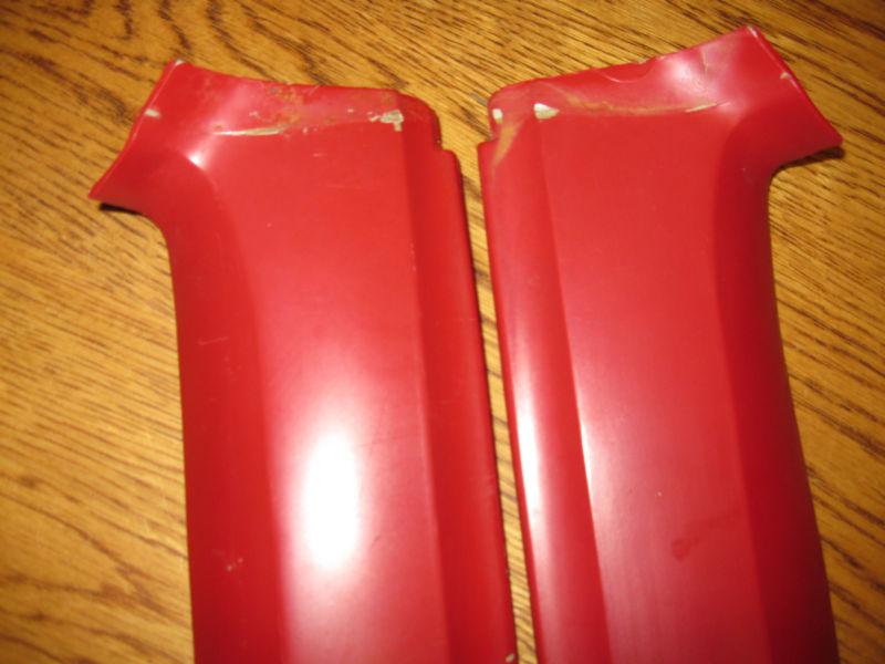 These are inner pillar moldings off a 1967 Firebid convertible, I believe they will also fit a 1967 Camaro. These are red in color and in very good original condition. Please e-mail if you have any questions