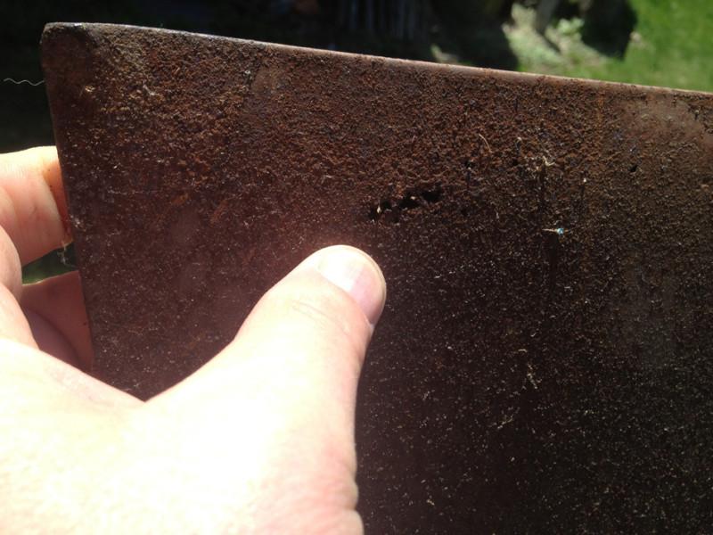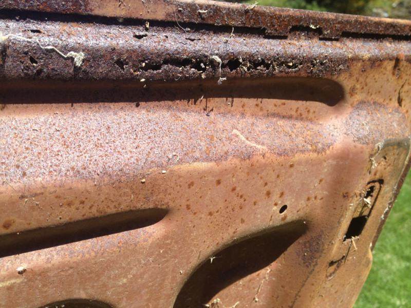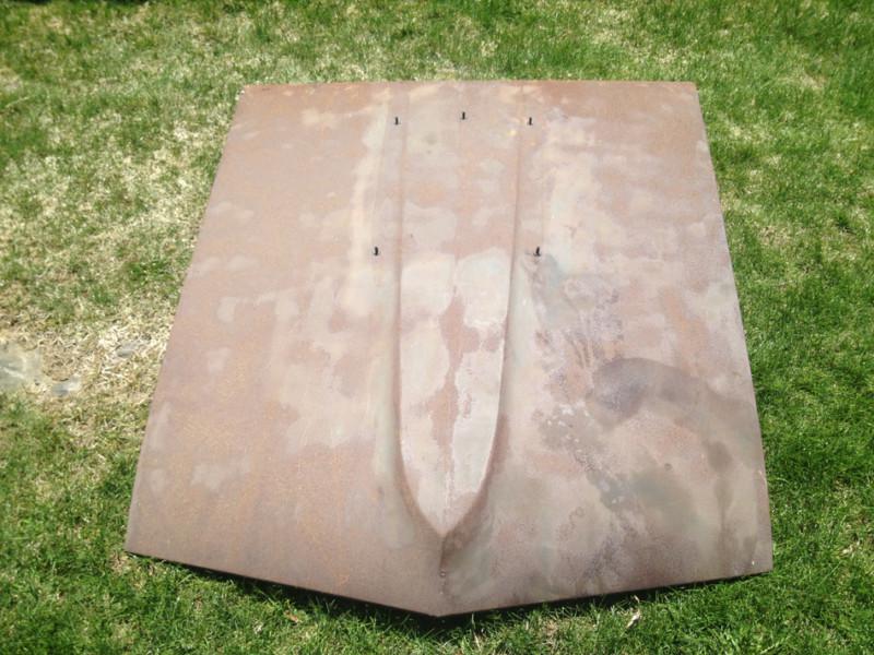 1969 hood with surface rust and some small rust pin holes along cowl valance, no dents, no bondo but lots of surface rust, needs to be media blasted...$50