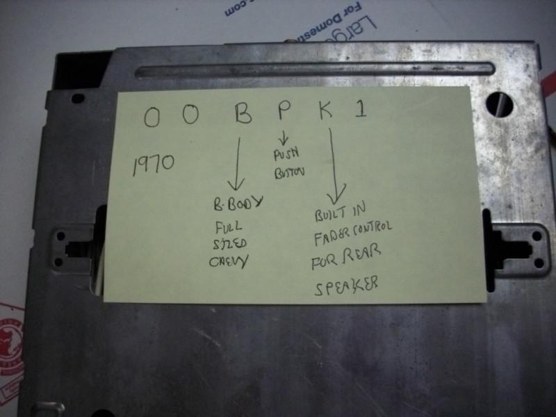 THIS IS A 1970 CHEVROLET AM RADIO IN USED CONDITION. SEE PHOTOS FOR I D TAG................. MAY FIT OTHER YEARS AND OR MODELS.. VERIFY THIS IS THE PART YOU NEED BEFORE BIDDING. THIS IS BEING SOLD AS IS. PICTURED ITEM IS EXACT PART YOU WILL RECIEVE. RADIO WORKED WHEN REMOVED FROM VEHICLE. BUYER PAYS SHIPPING.