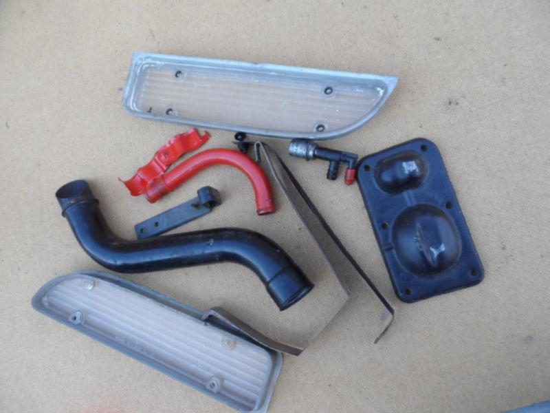1971 camaro. misc. parts the black tube connects from the stock manifold into a stock air cleaner. both lenses have cracks in them look close. one of the brackets is for a glove box support