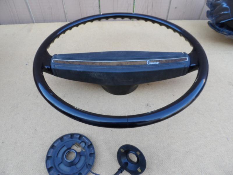 1971 camaro. center pad in good condition the strng wheel is cracked bottom center, please look at the picture. horn parts included. if you only want the center pad I will drop the shipping to $7.00