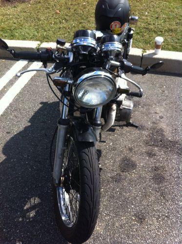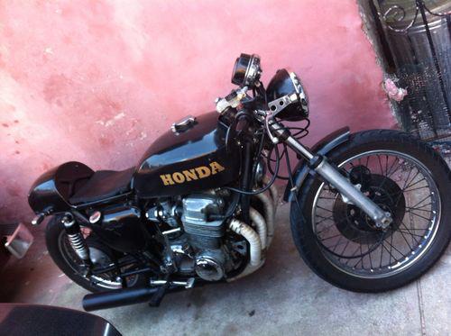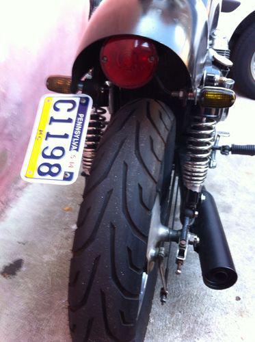 Selling my 1975 Honda CB 750 K4. First I'm selling it cause it's my first bike and I thought I wanted a vintage bike to start with but the up keep is too much for me so I'm selling. Not because it's full of problems. Second, about the bike, it was just inspected last month, has brand new headers and exhaust that's remove able very easily. The carburetors where just rebuilt also and new fuel lines where added. It has a new battery and tube in back tire. All electric components work as should. Third the bike is set up as a cafe racer with after market shocks, clip on handle bars and seat pan. There are cosmetic problems to it being the seat pan is a little cracked and one side cover is missing ( refer to pic ). I have two box of parts for it that comes with it and a set of unopened spark plugs and wire. It is an old bike and needs to be cared about. It runs fine, it's my every day I ride it all the time and is reliable. Could use a new seat though. The ignition was redone to do away with the points. It's kick start or electronic. The button is missing for the starter control but it works when you use a key or pen to push the control in. I'm asking 2700 wich isn't too firm. I'll take best offer as well. You can e-mail me with questions or to see more pictures of it as well. Thanks for checking it out and hopefully she'll find a nice new home.