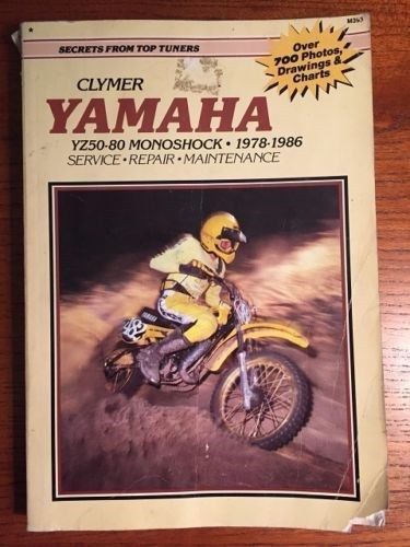 Here We have up for bids a M393 CLYMER SERVICE MANUAL YAMAHA MOTORCYCLE YZ50-80 MONOSHOCK MODELS. Covers Maintenance, troubleshooting & repair and covers the bike from head to toe. If you are working on one of the machines this is the manual for you. The CLYMER MANUALS are famous for being so user friendly!! |