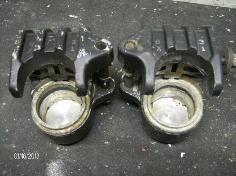 These parts are off of a 1979 Yamaha XS1100 but may fit other years and models. They were disassembled to make sure they are rebuildable. They are in good shape but need to be cleaned and repainted. All threads are good and nothing is frozen. There are very light marks on the pistons but they are still usable. It is up to the bidder to determine if it will fit their application. They are sold as is no returns so feel free to ask questions before bidding.