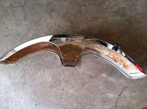 Decent but by no means new front fender from a 1981 Honda cb 750 custom.Speedo holding rubber is there but is split open. Buyer to pay shipping of $12.00 to upper 48, buyer to also pay paypal within 24 hours of auctions end. Thanks for looking.