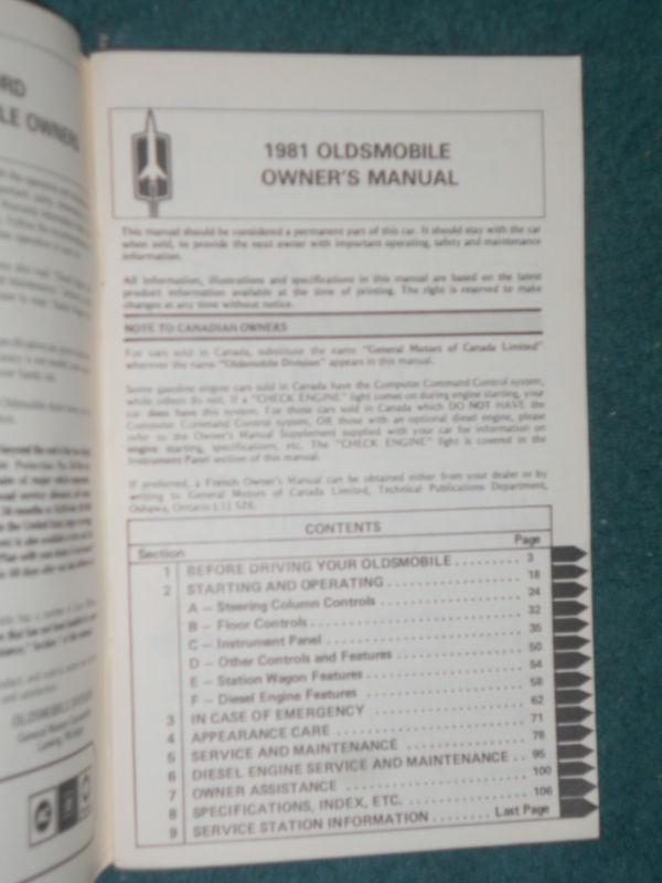 1981 Oldsmobile Delta 88 / Eighty Eight / Custom Cruiser /owner's Manual / Guide on 2040-parts.com