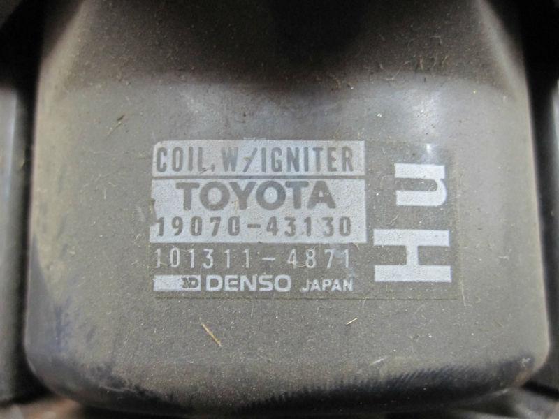 Used coil /igniter pack from a 1986 Toyota Supra, this was off a low miles wreck back in the early 90's and has been sitting on a shelf gathering dust. I have no way of testing this, sold as is, please see the photo's for the part numbers as this probably fit's other applications. Please ask any questions before bidding, than you.