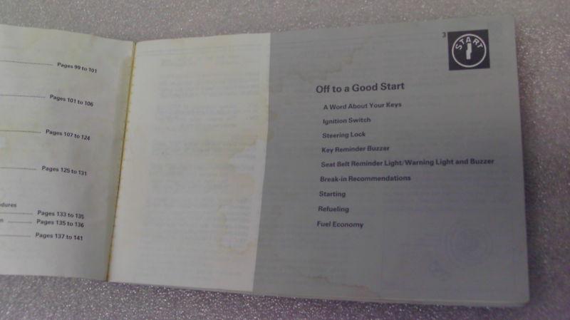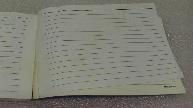 Selling an OEM 1990 Mitsubishi Eclipse 1G DSM owner's manual. The cover is well worn with several scuff marks, folds, and dings as shown in the detailed photos. The manual appears to have contact with water in the past, so the entire owner's manual is bowed. The first few pages have water marks, and the binder holding the manual together is coming apart in the back. The very back page for taking notes is almost completely torn out. All of the interior pages are there. Please review all the detailed photos to determine a final grade/condition of the owner's manual. The item that you see in the photos is the exact item that you will receive. Sold as is with no returns. Will not ship outside the USA.