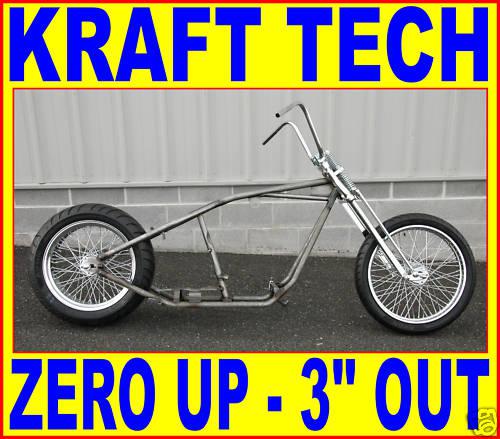 MADE IN THE U.S.A BY KRAFT TECH 36 Degree Rake. No up stretch. 3" backbone stretch. ROLLING CHASSIS / ROLLER You won't see this frame in any catalog. It was built to our specs by Kraft Tech. These rigid frames have all the rugged good looks of those found years ago but built with the technology of the 21st century. Today's high output engines require the utmost frame strength, as well as good brakes. These Frames were designed and manufactured with both in mind. Made to fit Most aftermarket Evo based motors like S&S, Revtech, Ultima, etc. Will also fit Panhead, Shovelhead or Big Twin Evolution with solid mount engine. A Manufacturer's Statement of Origin is included. * Welded on rear brake caliper mount Axle kit shown is included along Rear tire up to 200 with 1 1/8" belt or chain or 180 with 1 1/2" belt Here is what you get: 1. KRAFT TECH 200 RIGID FRAME W/ AXLE KIT PART# KACM180R 2. CHROME DNA STOCK LENGTH 22" SPRINGER FRONT END PART# M-SF-1000N 3. FRONT DNA AXLE PART# M-AX-1000 4. FRONT ULTIMA WHEEL W/ 60 SPOKES 21 x 2.15 CHROME SPOKES/HUB/RIM PART# 36-746 5. REAR ULTIMA WHEEL W/ 60 SPOKES 18 X 5.5 CHROME SPOKES/HUB/RIM PART# 36-736 6. AVON VENON 90/90-21 FRONT TIRE PART# 2808112 7. AVON VENOM 200/55-18 REAR TIRE PART# AV-451 8. CHROME CUP/BEARING/DUST COVERS PART# 12253 9. 13" CHROME HANDLEBARS PART# 0601-0568 10. 1" CHROME SHORTY RISERS PART# 25-2184 11. RISER HARDWARE PART# 0602-0110 + 6 WASHERS 13. FRONT RIM STRIP PART# DS181500 14. CHROME BILLET KICKSTAND PART# 10019 We have everything else you may need to build this bike. Email us w/ any questions. UPS GROUND SHIPPING TO THE LOWER 48 STATES. OTHER LOCATIONS ARE EXTRA! THE TWO BIKES BELOW WERE BUILT BY US USING FRAMES WITH THE SAME DIMENSIONS -AUCTION IS FOR FRAME ONLY. BIKES BELOW ARE FOR REFERENCE ONLY. Our customer support is available please call us at 610-754-8500 with any questions PAYMENT: We accept payment by PayPal and credit card, contact us for other options. Payment needs to be received within 7 days of purchase or the transaction may be cancelled. We do charge sales tax in PA (6%). State taxes will be calculated at checkout. CONTACT INFORMATION: OUR PHYSICAL/MAILING LOCATION IS 315 BIG RD(RT-73) PO BOX 298 ZIEGLERVILLE, PA 19492 PHONE 610-754-8500 FAX 610-754-8501 HOURS 10-6 M-F,10-5 S SHIPPING: SHIPPING COSTS ARE FOR THE LOWER 48 STATES ONLY. PENNSYLVANIA RESIDENTS MUST PAY 6% STATE SALES TAX. WE REQUIRE A PHYSICAL ADDRESS BE PROVIDED WITH PAYMENT RETURNS: We offer a 60 day return policy Buyer Pays return shipping. Our customer support is available please call us at 610-754-8500 with any questions