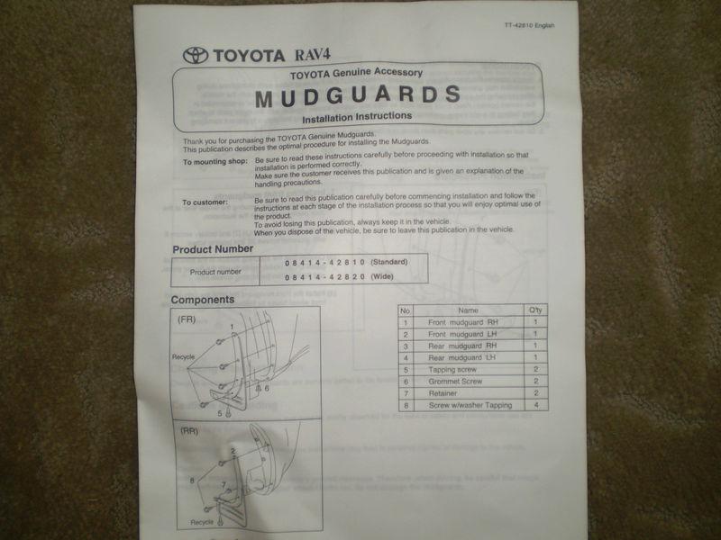 2001-2003 toyota rav4 mudflap splash guard front right side (passenger side)(US $19.99)
