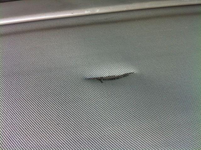 This is a rear cargo cover retractable shade cover that was removed from a 2004 Subaru Forester. It has a slit in the cover and a few dings on the outer shell see pictures but it pulls out and retracts smoothly. The picture shows the cover before it was cleaned installed in the car.