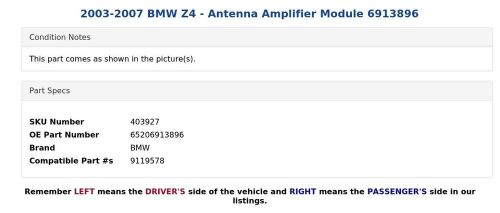 2003-2007 Bmw Z4 - Antenna Amplifier Module 6913896 on 2040-parts.com