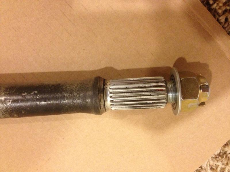 used 2003 Polaris Predator 500 rear axle in good condition has castle nuts and flat washers for both ends.