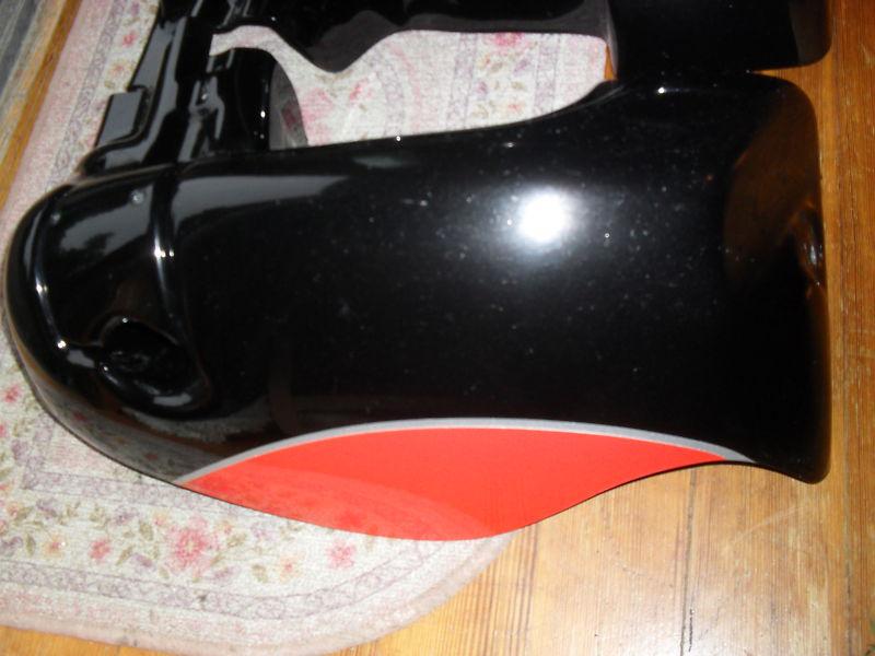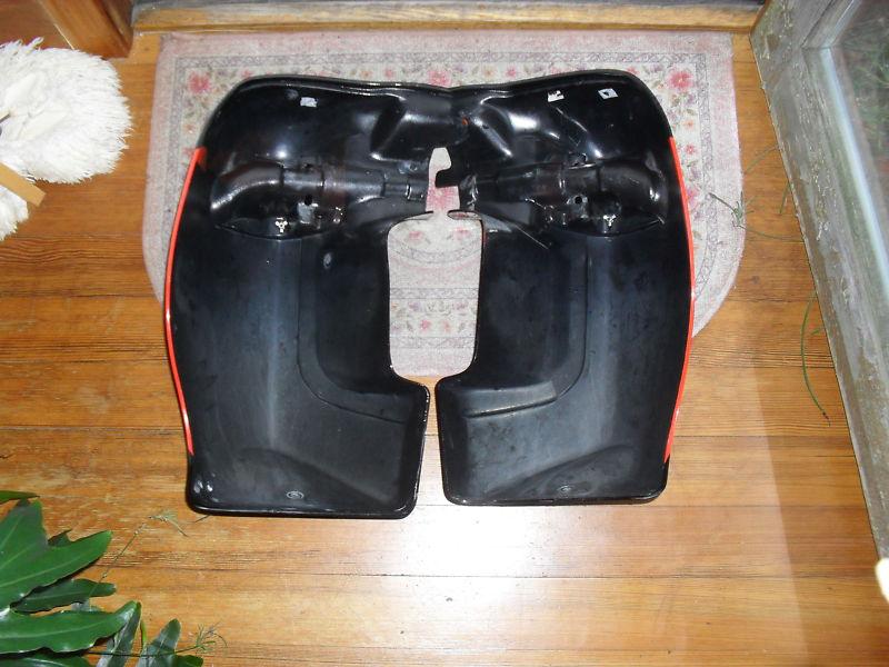 A PAIR OF VIVID BLACK 2004 SCREAMING EAGLE. NON VENTED LOWERS. THEY ARE IN GOOD USED CONDITION. ALL MOUNTING HARDWARE IS INCLUDED. NEW LEFT AND RIGHT LOWERS ARE 491.26 A PIECE. SAVE SOME BIG MONEY IF YOU ARE GOING TO REPLACE YOUR TRASHED ONES. USE AS IS OR REPAINT THEM. CHECK THE PICS FOR THIS IS WHAT YOU WILL RECIEVE. ASK QUESTIONS IF NEEDED. THANKS FOR LOOKING. THE WHITE SPOT IN THE FIRST PIC IS NOT A CHIP. THE ORANGE INSET AND STRIPE ARE IN GREAT CONDITION. THERE ARE NO GLOVE BOXES.