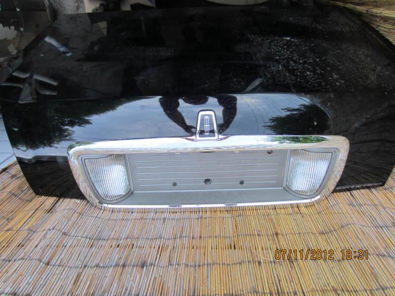 2005 Lincoln town car trunk lid. Black. No scratches. including License Plate holder, back up lights and hinge springs.