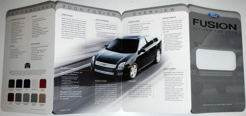 This 2006 Ford Fusion Preview brochure contains great pictures and information (about key features and color options) for the introduction of the all-new Ford Fusion.
