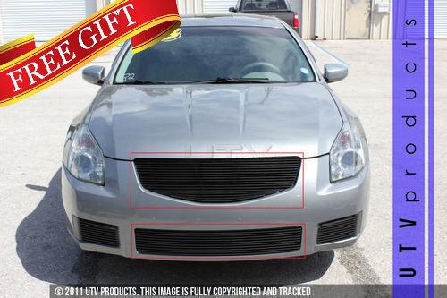 2007 - 2008 Nissan Maxima Upper & Bumper 2pc Black Billet Grille Replacement 07 on 2040-parts.com