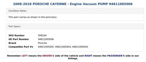 2008-2018 Porsche Cayenne - Engine Vacuum Pump 94811005006 on 2040-parts.com