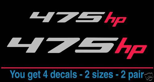 2010 2011 2012 CAMARO CUSTOM HP DECALS –TWO PAIR-TWO SIZES All items offered have been test fitted several times. If it doesn’t fit or is too difficult to install it isn’t sold. This Auction Is For - 2 pair of custom hp decals 2 – Large 2 – Small These can be applied anywhere. The larger pair are the ideal size for the sides of the cowl. The smaller are great for the rear bumper, by the taillight, or under the hood. You Choose your NUMBER!! You Choose Your Color from the Chart Pictured (default color is Silver/Red) IMPORTANT: PLEASE EMAIL IMMEDIATELY through Ebay with your color and number selection.***PLEASE EMAIL*** ******* PLEASE READ ******* Items are shipped to the address you have provided in PAYPAL. You will be responsible for shipping fees if that address is incorrect and the item is returned to me. All tracking info is attached to your order as well as the payment in paypal.