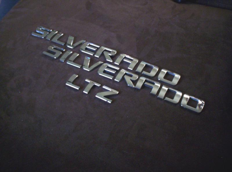 This auction is for 2 Chevrolet Silverado "SILVERADO" and 1 "LTZ" or don't use the "Z", and it is a LT emblem script lettering nameplates taken from 2010-2013 trucks. They go on each front door and one on the tailgate. Look as great as the trucks. Thank you very much for looking and Good Luck!