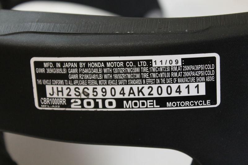 2010 HONDA CBR1000RR CBR 1000 RR MAIN FRAME "CLEAN". FRAME IS COMPLETELY STRAIGHT, IT CAME OFF A GOOD "CLEAN" RUNING MOTORCYCLE. ALL TABS AND MOUNTING BRACKETS ARE IN PERFECT SHAPE. CLEAN PAPERS. THE PAPERS STATE 20,000 MILES.