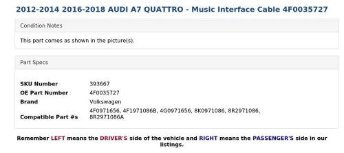 2012-2014 2016-2018 Audi A7 Quattro - Music Interface Cable 4f0035727 on 2040-parts.com