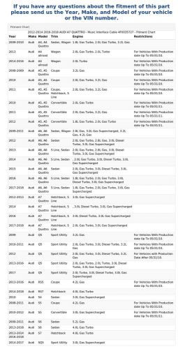 2012-2014 2016-2018 Audi A7 Quattro - Music Interface Cable 4f0035727 on 2040-parts.com