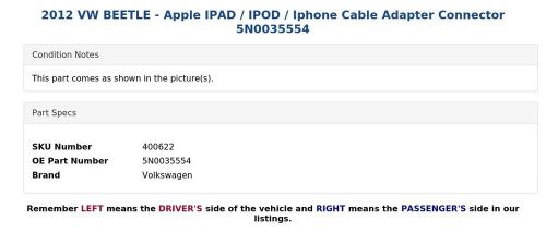2012 Vw Beetle - Apple Ipad / Ipod / Iphone Cable Adapter Connector 5n0035554 on 2040-parts.com