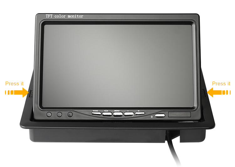 | Monitor | Style | 7'' TFT LCD Color Monitor | | Color System | PAL/NTSC (AUTO) | | Display Resolution | 800(H) x 480(V) | | Vedio Input | 2 Channel | | Brightness | 250(cd/m²) | | Operating temperature | -20°C - +70°C | | Voltage | DC12V-24V |