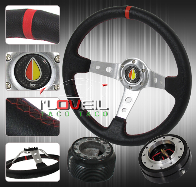 350mm Deep Dish Steering Wheel Aluminum + Slim Quick Release + Hub + Horn Button on 2040-parts.com
