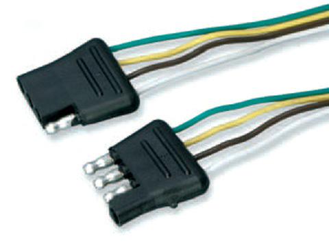4WIRE FLAT VEHICLE AND TRAILER ENDSET. Each kit contains basic wiring and connector components to wire the tow vehicle to the trailers lighting system. Kit contains a 48" trunk connector and a 12" trailer connector. Both units have molded 4flat plugs neatly packaged for easy display. Splices not included.