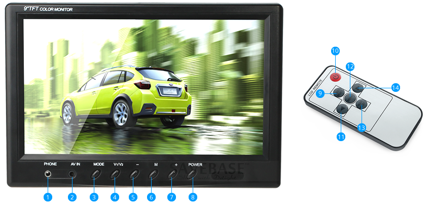 Bus / Autocaravana / Camión 9" 4-Pin Monitor TFT LCD de Conector
