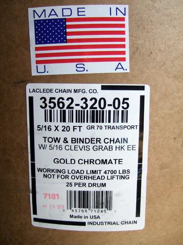 5/16" X 20' Laclede Grade 70 Transport Chain & Grab Hooks Usa Log Tow Chain New on 2040-parts.com